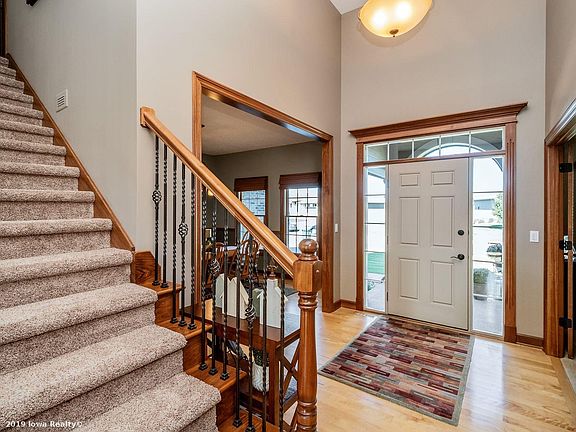 Check out this beautifully maintained home in a quiet neighborhood in Grimes. Conveniently located close to schools, shopping and Saylorville Lake, this home has lots of entertaining space for your family and friends. There is an eat in kitchen with clear Alder custom cabinets, pantry and large island. The kitchen opens up to a family room with vaulted ceilings and a fireplace. This gorgeous home features a formal dining room, office, mud room and first floor Master Bedroom and laundry. The walkout lower level includes finished basement with lots of room to hangout and includes a wet bar. Sit back and enjoy the firepit in your large backyard that backs up to a beautiful bike path surrounded by trees. This house is full of wonderful living space just waiting for you