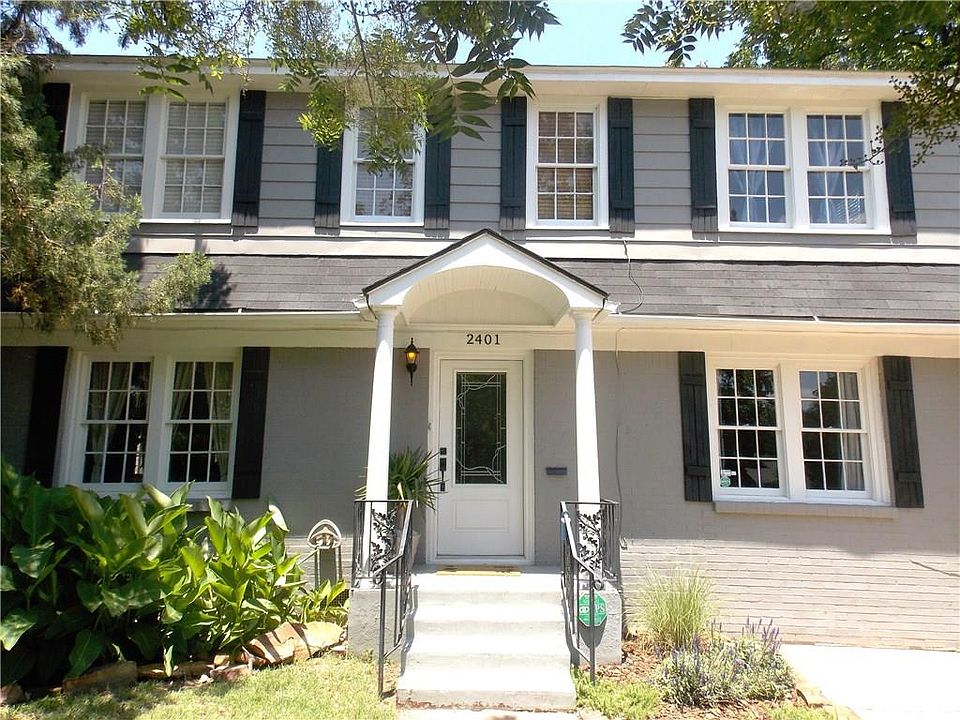 Wow, this super cute home offers location, style, and value all in one sweet package. The versatile floor plan allows for myriad design choices with either 2 living areas or 2 dining areas, a gorgeous updated kitchen, an adorable 1/2 bath down and full bath up, great hardwood floors, tons of windows that flood the house with light, a classic fireplace, 3 large bedrooms (one with a private balcony), attached garage, and great yard on a corner lot. The modern color scheme along with mildly mod touches here and there, make 2401 a must see....and better yet, a must have!