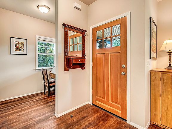 Immaculate light and bright craftsman in desirable NWX, an award-winning neighborhood built around mature trees in the foothills of the Cascade Range. Beautiful open floor plan with 9 ft ceilings throughout. Three bed, three bath, plus downstairs den/office area with a separate entrance - perfect for small home business. Spacious kitchen w/walk-in pantry. Adorable work-space nook off of foyer. Large covered front porch. Cozy, lush side yard and lovely deck ideal for relaxing summer barbeques. Easy access to outdoor living from both the kitchen and den. Dual zone heating. Oversized 2 car garage plus parking for 4 cars in the driveway. Updating in 2016 included hand-rubbed oil stained oak flooring throughout the downstairs and new railings and trellis for the back deck. At the same time, the kitchen was remodeled to include new floor tile, quartz countertops, subway tile on the backsplash, and a new large capacity sink. Central air conditioning was also added.