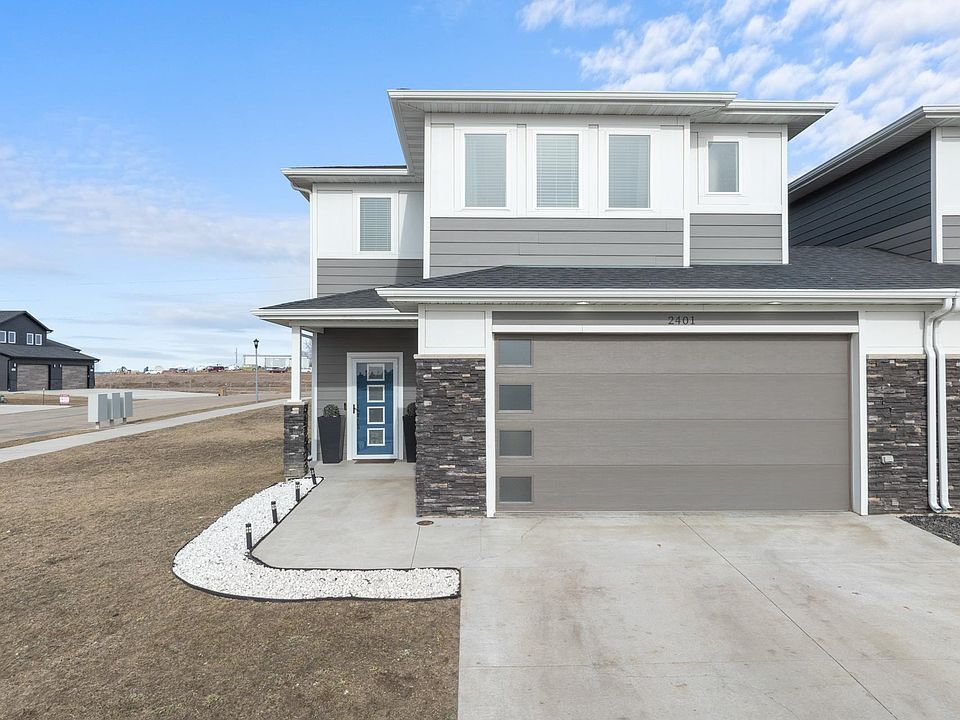 Explore this warm and welcoming townhouse, built in 2015, that perfectly combines a contemporary open-concept layout with the coziness needed for both quiet family time and entertaining friends. Flooded with natural light from large windows and a sliding door, this home extends into a serene, private backyard, surrounded by a white vinyl privacy fence, making it a perfect spot for relaxation or hosting barbecue gatherings.  The heart of this home is its kitchen, a delight for any cooking enthusiast, boasting modern quartz countertops, stainless steel appliances, and white cabinets set against a stylish tile backsplash. Adding to the main level's functionality is a conveniently located half bath, ensuring guests have easy access without disrupting the privacy of the upper floor.  Upstairs, the thoughtful layout continues with a spacious family room, three comfortable bedrooms—including a peaceful master suite with its own private bathroom—and an additional full bathroom to accommodate the household’s needs. A handy laundry area on this level adds to the convenience, making daily chores more manageable.  Notable features throughout include high-quality quartz countertops, durable hardwood floors, and low-maintenance tile floors. The addition of a heated, fully finished two-car garage offers ample space for vehicles and extra storage.  Situated just a short drive from the 83 Bypass, this townhouse offers unbeatable convenience for commuters and those eager to explore everything Minot has to offer, from the proximity to Minot Air Force Base to various shopping, dining, and leisure options. Located west of the upcoming second high school in Minot and within the Lewis and Clark School District, this property is an excellent opportunity for anyone looking for a stylish, comfortable home in a desirable neighborhood.