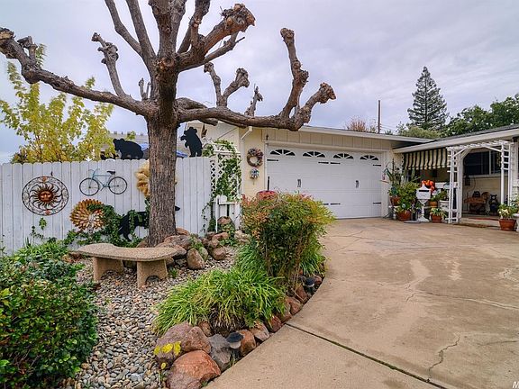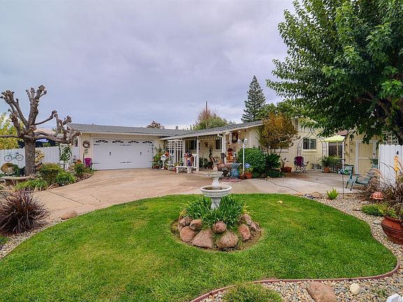 Lush low maintenance landscape abounds on this well situated, gated, corner lot home. Multiple patio vignettes provide privacy & room for entertaining, above ground pool w/built-in deck for hot Sac summer days, RV access, 3 storage sheds, newer roof, newer ac. Open floor plan with adtl 300 sq ft enclosed patio, kitchen w/custom tile counters & double ovens. Indoor laundry room w/storage cabinets, shelving & pantry connected to 2nd enclosed patio great for workshop...or use your imagination!
