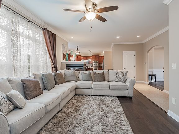 Fantastic home in great location! Open floor plan with 2 story foyer. Large great room with 2 sided fireplace opening into breakfast room. Tons of kitchen cabinets! Arched openings into dining room. Master suite features his/hers walk-in closets, huge shower and double sinks. Lower level offers a bar, 5th bedroom, and a full bath plus a work/play area.