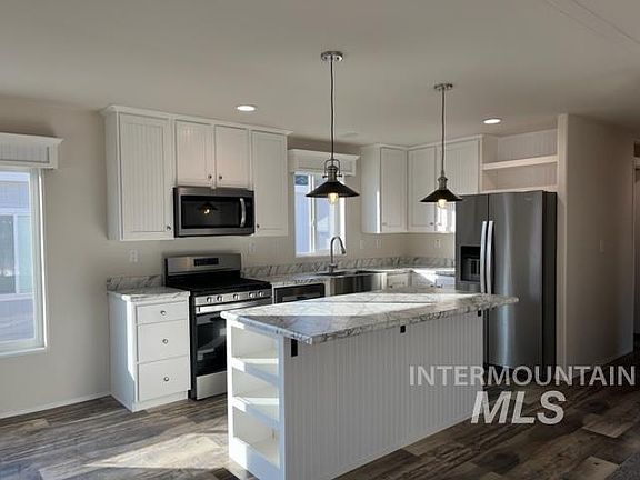 New Fleetwood manufactured home in beautiful Owyhee Estates/Autumn Ridge 55+ MHP! South facing windows look out to large full covered front porch. Enjoy relaxed living in this open, spacious floor plan with large windows throughout. Upgraded white kitchen cabinets, upgraded stainless steel appliances, gas, pull-out faucet and farm sink, kitchen island faces the living and dining rooms. Drop pendant lights over island and ceiling fans all add to the beauty of your new home. Newly changed to 55+ Autumn Ridge MHP is off the Vista Rd Exit, and close to Overland Rd. Central to everything, on the Boise Bench, this comfortable, updated neighborhood with quick access to the freeway, airport, downtown and is on the city bus route. Well-managed park is clean and attractive. Rent $550 plus $54 water/sewer. Buyers must contact Owyhee Estates/autumn Ridge management for lot rental application for residential park approval before submitting Purchase offer. This is a 55+ MHP.