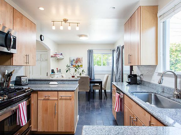Sun-filled 2 bdr/1 ba home on tree-lined street! Beautifully updated kitchen w/grnte cntrs, SS appliances, & tile flrs. Open kitchen/dining rm w/breakfast bar. Hrdwd flrs, dual-paned windows, plus bonus room. Private & spacious backyard, perfect for entertaining! OPEN 8/25 2-4:30pm.