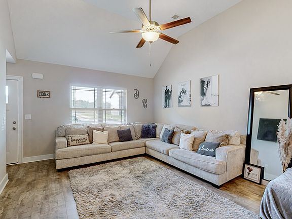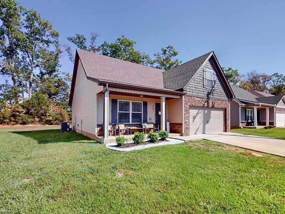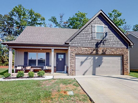 Welcome to this stunning 4-bedroom, 2.5-bathroom home featuring charming board and batten siding and decorative stacked stone. Highlights include: Spacious Living: Enjoy a bright living room and a kitchen/dining area with a vaulted ceiling. Chef's Kitchen: The kitchen boasts extra cabinets and comes equipped with a stainless steel smooth top stove, dishwasher, and microwave. Main Level Convenience: The owner's suite, complete with a full bath, is conveniently located on the main level, along with a half bath for guests and a separate laundry room. Upper-Level Comfort: Upstairs, find three additional bedrooms and another full bath, including a large 4th bedroom that can serve as a bonus room. Parking & Access: The home features a 2-car garage and a concrete driveway for easy access. Location: Conveniently situated near I-24, schools, and shopping, making it an ideal location for families and commuters alike.