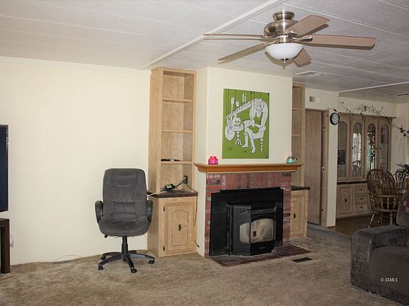 Very Nice Triple Wide With Open Split Wing floor plan. 3 bedroom 2 full baths with nice in door laundry & pantry area. Large living room with additional Den. Upgraded Kitchen counters with adjoining dining with built in hutch. Large In door laundry & pantry with sink. Brand new Tank less water heater. Master suite is nice with double walk in closets & master bath with new flooring & vanity. Guest rooms are good size with a second full bath to share. Park like setting with beautiful Oak Trees, garden area & dog run. Nice 14x25 covered patio with additional 15x30 concrete patio surrounded by block walls. 3 Car garage & workshop along with storage shed. Plenty of room for all your toys.New Roof & Heater 2015. Energy Efficient Dual pane windows, Dual Evap coolers. New septic line from house to the tank. This Property backs up to the creek so very nice !!