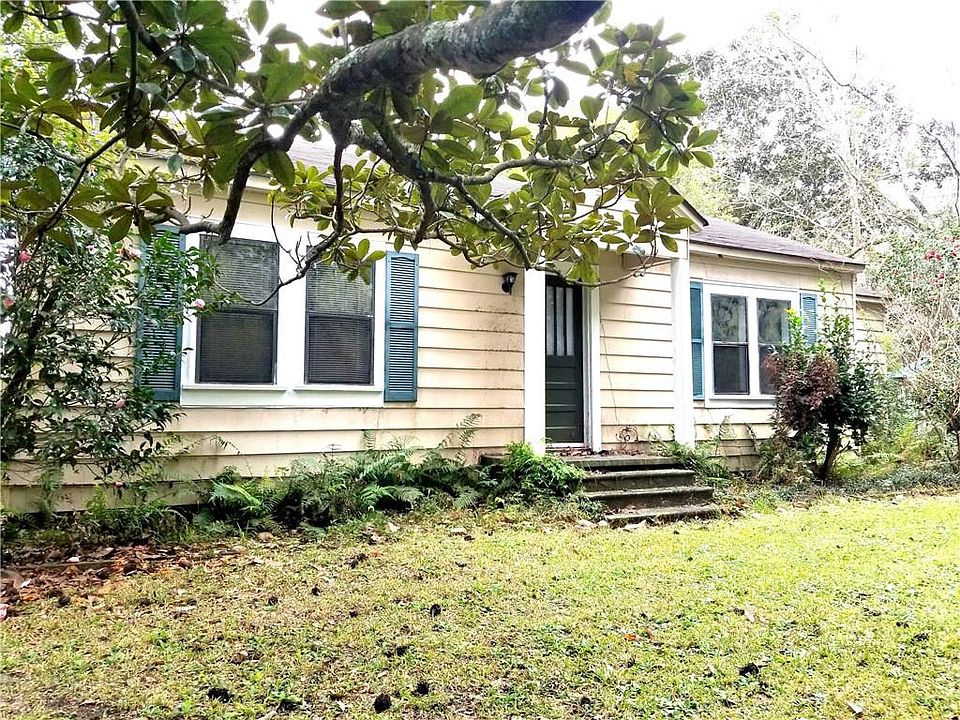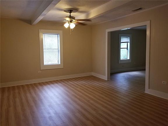 This home is located on a corner lot at Riverside and Brown St. It's a large lot partially fenced. Inside, there is a large living room with painted wood beams running across the ceiling. The living room flows in to the dining area. The kitchen is spacious with lots of cabinets and counter top space. There are three bedrooms and a bonus room. There is a covered patio out back along with a single attached carport and a single car garage.