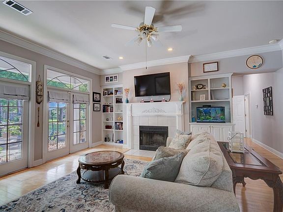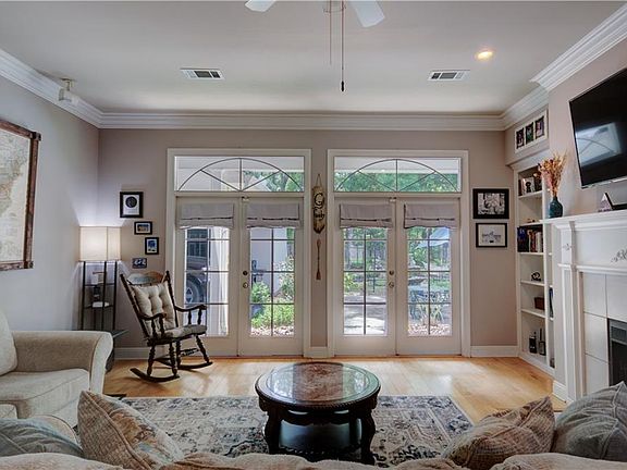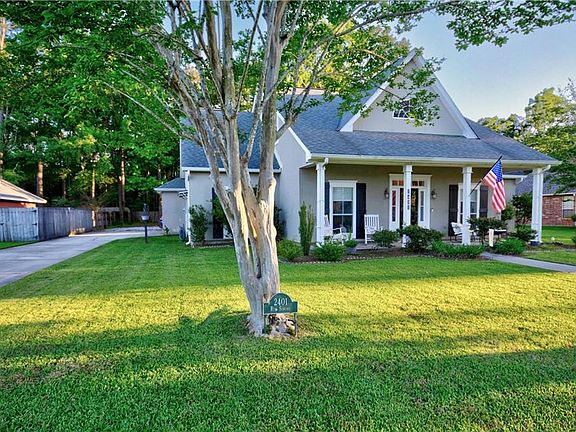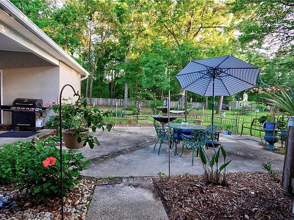 Welcome to your enchanting Acadian/French Country style retreat! This captivating 3 bedroom, 2.5 bath, 2 story home on a half-acre lot offers a serene escape with a touch of nature's beauty. Walking into the foyer, you'll be greeted with 20' high ceilings. The entire downstairs features 10' ceiling maximizing your space. The property features a beautifully landscaped courtyard overlooking a backyard that backs up to wooded tranquility. Enjoy the peaceful ambiance of songbirds flitting about, creating a park-like feel right in your own backyard. Two mature satsuma trees will be providing you with winter's citrus. The gravel driveway extension provides great RV/Boat Parking with a 30amp outlet inside the workshop. Underground drainage has also been added to the back yard. Community features a large pool with clubhouse and tennis courts which is optional for every summer!