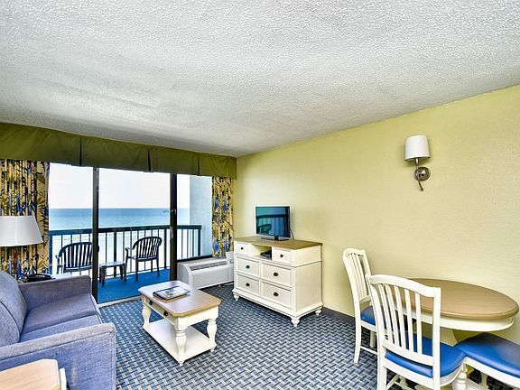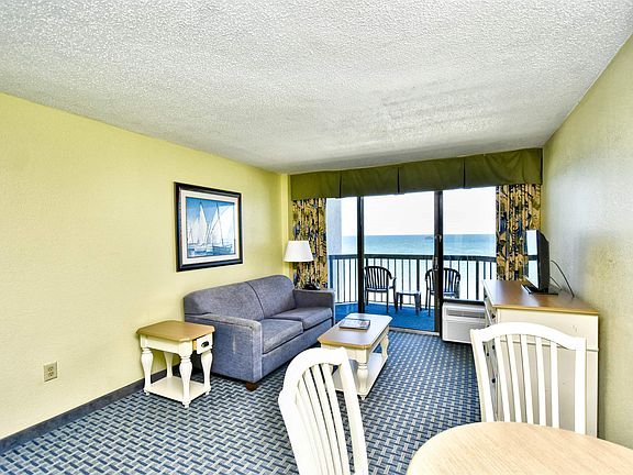 Enjoy the view from the balcony of this oceanfront one bedroom unit, overlooking miles and miles of the beautiful Atlantic Ocean. The unit can sleep 8 people with its two queen beds, queen sleeper sofa and murphy bed. Compass Cove Resort offers a wide range of water amenities including outdoor/ indoor pools, hot tubs, a kiddie pool, indoor/outdoor lazy river and two waterslides. In addition, guests can enjoy the game room, shuffleboard and fitness center. The Resort has on-site Compass Rose and Crow's Nest Restaurant and a beachfront- tiki bar. Plenty of covered parking. The Pinnacle is just minutes from the Grand Strand's finest dining, shopping, golf, and entertainment attractions, the airport, Boardwalk, Broadway at the Beach, Market Commons, and so much more! Great investment opportunity.