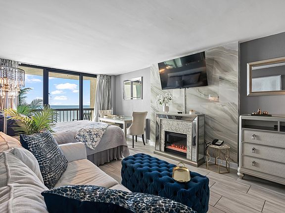 Welcome to this stunning oceanfront efficiency condo at Compass Cove Pinnacle Oceanfront Tower in Myrtle Beach! From your private balcony, take in breathtaking views of the ocean. This condo has been beautifully updated throughout, starting with the kitchen, which features newer cabinets, quartz countertops, and a stylish backsplash. Tile flooring flows seamlessly throughout the space, including the balcony, while a quartz tile fireplace surround adds a touch of elegance to the living area. Plus a new HVAC June, 2024! Resort amenities are plentiful, including a tiki bar, restaurant, indoor and outdoor pools, lazy river, water slides, kiddie pool, hot tubs, beach access, laundry facilities, a fitness center, outdoor grills, a gift shop, and a game room. Whether you're looking for a relaxing getaway or a fun-filled vacation spot, this condo has it all!