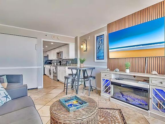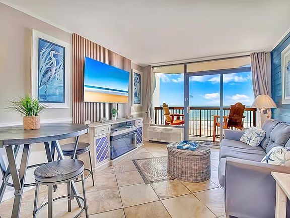 Stunning updated one bedroom corner 4th floor end unit at the world famous Compass cove resort. This tastefully renovated unit has no upfit cost and one of the nicest units in the whole complex. The end units are larger than the other 1 bedroom units in the building and they have a large window to see the ocean from bedroom. The 4th floor is the perfect height for the beach and for dolphin sightings. This beautiful unit is equipped with 18" tiles with custom tilework , all brand new furnishing, custom extended kitchen with extra granite counterspace and even a washer and dryer. The bathroom is also larger then the other 1 bedrooms in the complex with this one having the open concept. The living room has shiplap on walls, custom fireplace and all new decor and tv. The balcony has high sitting chairs to overlook the beauty of the Atlantic. Everything is included in this show stopping unit.  This one is completely different than the others you'll see, updated furnishings, flooring, electronics and more. Compass Cove has all the amenities, pools, water slides, Starbucks, multiple dining options, ALL onsite at Compass Cove. Make this your beach get-a-way or investment property. The rental income is awesome!