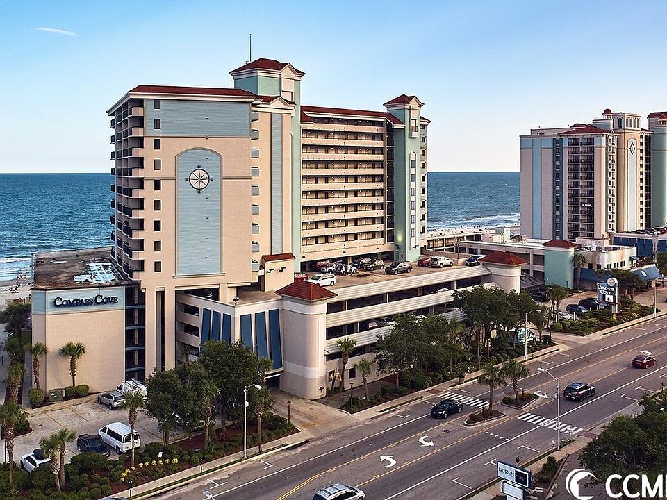 Gorgeous views from this fully equipped oceanfront 1 bedroom condo in the much sought after Compass Cove Resort where the amenities include indoor and outdoor pools, restaurants/bar area and Starbucks coffee shop! Fantastic opportunity to purchase an affordable oceanfront 1 bedroom leading into the summer 2023 peak rental season! This unit has fantastic rental income history and has been updated with a new feature wall and linear fireplace plus huge wall mounted flat screen TV!s Full kitchen and spacious bath - so few 1 bedroom oceanfront units available in the Myrtle area - don't miss your opportunity!