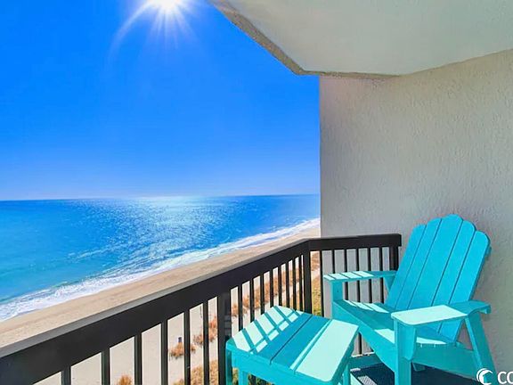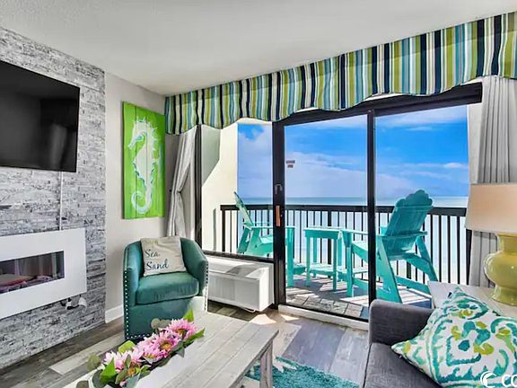 Wow what a rental machine and a view from the 9th floor. Beautiful updated corner end unit at Compass cove resort. The north corner units have the largest kitchens of the one bedrooms and also have the large ocean view windows facing the north coastline that is not in the other one bedrooms. The north end corner units are also larger than the other one bedrooms in the resort. This end unit also has the custom extended kitchen that expands out into the living room which makes it an open floor concept from the kitchen to the living room giving it tons of counter space with brand new high end level 3 granite. There is not a larger kitchen in the whole building as large as this one. There is also a washer and dryer combo so need to go to the laundry matt or the 1st floor laundry room. This unit is equipped with new plank flooring, new king bed, high end furnishes, custom headboard, rock tile electric fireplace , large tvs and high top siting Adirondack chairs which are all included in the purchase. There is even a new sleeper and shiplap on the walls in the living room. Dont miss your chance to have one of the highest grosses rentals at Compass Cove. Compass Cove is conveniently located just a few minutes to the airport, Market Common and everything MB has to offer. Tons of pools and amenities.