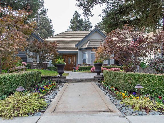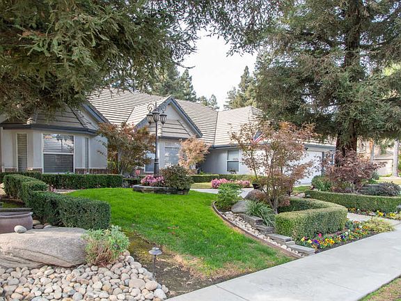 Located in Gold Creek, one of Visalia's most desirable SW neighborhoods. This beautifully landscaped home is full of possibilities. Inside you are greeted by a gorgeous chandelier in the foyer, a high beamed ceiling, built-in entertainment shelving, and a statement river rock fireplace that stretches from the floor to the ceiling! Stunning tray ceilings, built-ins, recessed lighting, and geometric style archways throughout. The master bedroom has double glass panel doors, high ceilings, its own fireplace, a large bathroom, a walk-in closet, and open to a fantastic area that could be used as a seating area, nursery or office! There are many great features in this home, including; the breakfast nook, bench style table just off the kitchen. There is a large bonus room with a 1/2 bathroom. Leading out from the living room is an amazing sun room overlooking the pool and spa. The backyard landscaping creates a relaxed feeling. Schedule a showing today, and don't miss this opportunity!