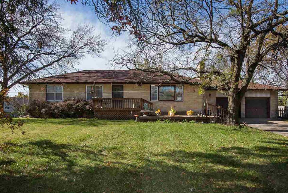 A rare find! Enjoy 1.29 acre county property with all the conveniences of the city. Great location with 6+ car garage plus separate workshop. Solid built Limestone home with large front deck and big privacy fenced backyard. Comfortable home with large brick fireplace. Perfect location to add 2nd bathroom if desired. Wood floors in spacious dining room and Galley kitchen. Large master bedroom with laundry room on main level. Very cool brick walled basement with bar. Great Family/ Rec room and storage