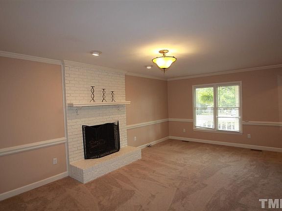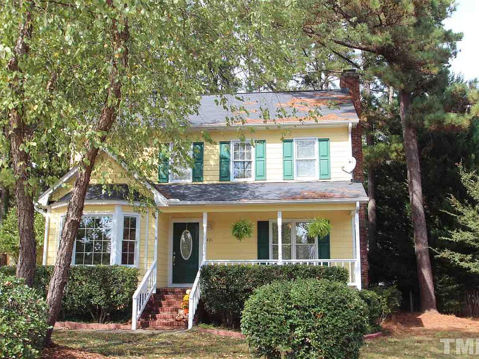 Splendid home in Durant Trails with great location near I-540, shopping, restaurants and greenway on .24 acres. Large living room w/fireplace, dining room w/hardwoods, eat-in kitchen w/granite counters, master suite with walk-in closet & lovely bath, updated bathrooms, new carpet & interior paint. Private, wooded backyard w/new sod, partially-fenced for pets. Huge deck for entertaining. Ample storage in shed & attic. HVAC, roof, water heater less than 5 years old. MUST SEE!
