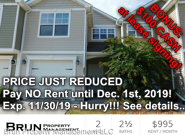 No rent until 12/01/19 plus $100 CASH bonus - Exp. 11/30/19 - Price reduced from $1,095 to $995 on 10-28-19. Won't last at this price, don't miss this special! $100 CASH bonus at lease signing! - Expires 11/30/19 - Hurry! These are our November 2019 move in incentives for this unit. Our incentives are based upon your FICO score: No FICO score at all: The $100 CASH bonus at lease signing. 500 to 649 FICO: Pay no rent until 12/01/19. Plus the $100 CASH bonus at lease signing. 650 to 799 FICO: Pay no rent until 12/01/19 + 1/2 off 1st month of renewal. Plus the $100 CASH bonus at lease signing. 800 to 900 FICO: Pay no rent until 12/01/19 + 1st month of renewal free. Plus the $100 CASH bonus at lease signing. Please call us or visit our website for all qualifications, terms and conditions. (RLNE1835826)