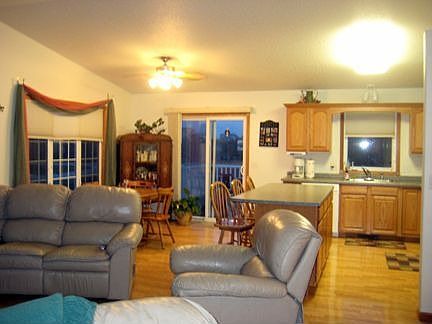 You're going to love this great ranch style home with a walkout basement! Beautiful modern colors greet you as you enter this home which features a kitchen with island snack bar, sliding glass door from the dining room to the deck with a great view, and a spacious living room. The lower level features a large family room, 2 bedrooms and a 3/4 bath. Wonderful 2 acre lot with approximately 300 trees, 12 x 14 patio, and a fire pit. The attached triple car garage is insulated. Wonderful rural setting in much-desired area with asphalt streets in NW Bismarck.