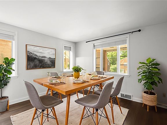 Nicely updated on a corner lot, this 3-bed, 1.5 bath 2-story Tudor exudes a story book charm with its brick and stone exterior and slate roof. Inside, you will find original hardwood flrs throughout the home with a richly stained finish. The living rm features a bay window and a log-burning FP as a focal point. The dining rm, with large window overlooking a covered front porch, is bathed in natural light and can accommodate a large table, ideal when hosting a crowd. The equipped KIT provides ample storage and prep space, stainless appliances, Corian counters, tile backsplash, and access to the covered patio and fenced-in backyard. A powder rm finishes this lvl. The 3 upper-lvl bedrms all have hardwood flrs including the large master bedrm with sitting area and a spacious closet. The main bath is downright gorgeous. The lower lvl offers a lndry area and a gameroom with bar that is ready for your personal touches. 1-car integral garage. Convenient to major roadways, parks, and eateries.