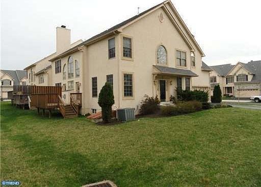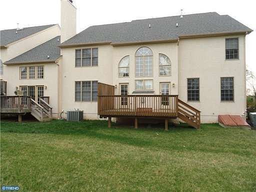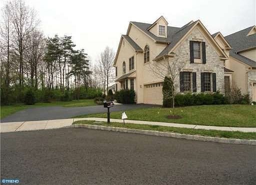 Here is a beautiful end-unit carriage home in the Reserve at Penn Crossing with side entrance 2 car garage . There is a stunning two-story entrance and family room with a wall of elegant windows surrounding a gas fireplace and hardwood floors. Corian countertops, backsplash, , 42" cabinets make this gourmet kitchen truly wonderful. A large, sunny eat-in area is located off of the kitchen. There is a great living room and a beautiful dining room with big windows that allow natural light to pour in. The master bedroom is spacious with vaulted ceilings and his and hers walk-in closets. The bathroom has his and hers sinks, a high ceiling, a large soaking tub and a stall shower, tile flooring and a big, beautiful window. Full finished basement with Bilco Doors. Recessed lights are throughout the home. Outside is a great deck that looks out onto a quiet backyard.