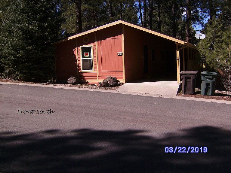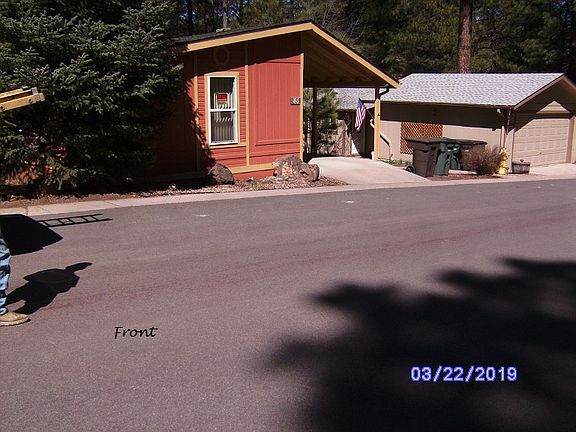 Home is located in Wildwood Hills Park--a 55 and older beautiful, quiet, 5 star mobile home park, with a clubhouse, pool & hot tub (unit is on same street). Majestic, huge Ponderosa Pine trees throughout park (4 gigantic ones on lot in backyard!) 1 mile from downtown Flagstaff and NAU. It has a 10' x 12' AZ room with big windows. Washer/Dryer are 4 yrs old; refrigerator is 2 months old; new garbage disposal; ceiling fans w/lights in bedrooms and living room; shade screens on all windows. New roof and exterior paint in 2013; interior paint & carpets cleaned March 2019. Double pane windows; wood blinds. A wood pellet stove in living room is functional and fireplace-cozy. Park space rent is $507 per month + trash and water sewer.