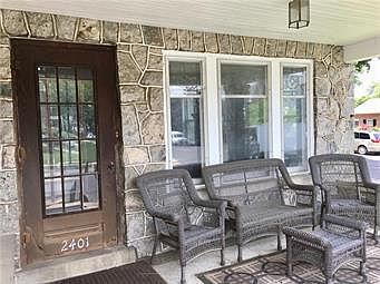 Beautiful Historic Brick & Cut Stone Home! HUGE 5 Bedroom 2 Bath Home. Remodeled Maple Kitchen with Tile Floors and Tile Backsplash, Large Dining Room & Living Room with Fireplace, separated by French Doors, Gleaming In-Laid Hardwood Floors, Leaded Beveled Glass, Tile Baths, a Balcony off the Rear Bedroom Overlooking the Private & Fenced Backyard, Large TREX Deck, Large Tiled Front Porch, Solid Brick 1+ Car Garage with Opener, Ready To Move Right In!