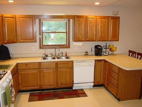 A nice 3 bedroom, 2 bath, 1,584 square foot home in a convenient location. Split bedroom floor plan, vaulted ceilings, generous sized rooms, mudroom/laundry room off kitchen leading to the over-sized 2 car attached garage, fully appointed kitchen with breakfast bar opens into the dining room and living room. A large slider door opens from the dining room onto a private deck overlooking the back yard & over 200' of pond front onto a man made, spring fed pond to enjoy water recreation right off your backyard. New kinnetio water softener, R/O system, carpet, paint and gas range/oven. Lawn irrigation on large double lot makes for plenty of room to play or expand. This home is in move in ready condition.