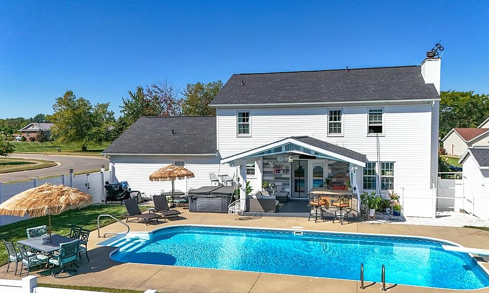 Welcome to this gorgeous Ontario home featuring an incredible backyard paradise with a heated inground pool, covered patio and bar—perfect for entertaining! The remodeled kitchen (2022) boasts ceiling-height cabinets, gorgeous granite countertops, a kitchen cabinet mixer lift, a gas range, and a giant center island. Soft close doors and drawers. Living room with gas log fireplace enjoys a breathtaking view of the pool. This home has been meticulously maintained, too. Recent upgrades include: furnace with central air (2024), roof (2018), windows (2020), Wi-Fi insulated garage door (2024), new vinyl privacy fence (2021), water heater (2023), pool heater (2021), pool liner with 25-year warranty (2017), Samsung Bespoke appliances with warranty (2022), and Govee permanent outdoor lighting. A winter safety pool cover was also added in 2025. Conveniently located just minutes from shopping, dining, schools, parks, hospitals and quick access to State Route 30 and I-71.