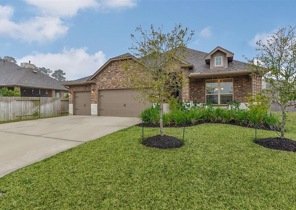 Gorgeous 3 year old 3 bedroom 3 car garage home, adorned with brick and stone, a relaxing front porch, and covered back patio. The home is tucked away in the gated community of Inway Oaks Estates, which shares Northampton's amenities. Once inside, notice the tall ceilings throughout, great natural light, 2" blinds, crown molding in the formal dining, living room & master bedroom. Easy to care for wood-like tile runs through the high traffic areas. The kitchen offers 42" cabinetry w/under cabinet lighting, ample granite counter top space, breakfast bar, prep island, Bosch stainless steel appliances, & a large sink. The living room is spacious and offers a gas fireplace. The floor plan has a master retreat with a tray ceiling and sitting area. The master bath has dual sinks, a garden jet tub, & a shower. The backyard has great space & the covered patio has a gas stub and is tv ready. Easily maintain the yard w/ in-ground sprinkler Quick access to 99, shopping, The Woodlands & 45.