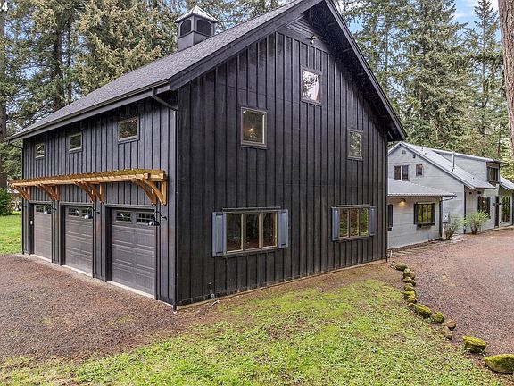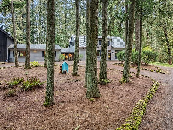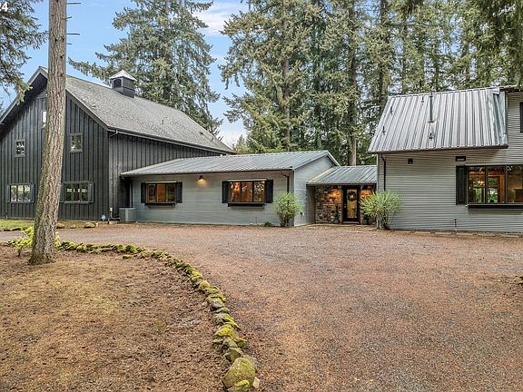Situated on just over 5 acres, this stunning custom home combines NW Contemporary with some industrial touches. Industrial style gourmet kitchen is one of a kind. There are 5 bedrooms with the primary suite on the main floor. This home offers a great room style floor plan with an additional family room, media room and an office! Radiant heated concrete floors. The setting is private, yet it's in a neighborhood of 11 homes that are all on acreage. Spacious stamped concrete patio and sprawling trails on the property. The detached shop has 2 RV/Boat bays and plenty of work space. Stunning setting but minutes to amenities.