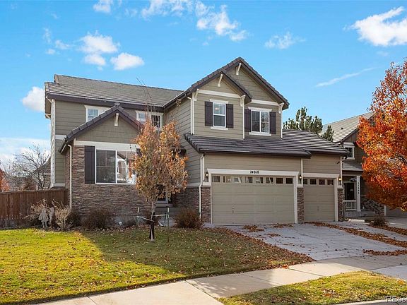 Beautiful two story home on corner lot with finished basement! Fantastic location in the neighborhood with a corner lot for privacy, you’re across the street from the community pool and park with open space and walking trail system. This spacious home is truly move-in ready and welcomes you with high ceilings, gleaming hardwood floors extending from the entry way through the formal living room, dining room and into the bright and open family room with gas fireplace and tons of natural light. The family room opens to the large eat-in gourmet kitchen with center island, a wall of cabinets for plenty of storage, double ovens and all appliances included! The well laid out floorplan is perfect for entertaining. The main floor is complete with a powder bath, laundry room with utility sink and front office with glass French Doors. Retreat upstairs to your primary suite with vaulted ceilings, walk-in closet, and private spa like bathroom with jetted soaking tub. Just down the hallway are three good sized bedrooms with two sharing a full Jack-n-Jill bathroom and one with a private en-sutie bathroom, giving everyone their own space. This spacious home continues to the finished basement with a huge Rec Room and wet bar with granite counters and tile backsplash giving you the perfect entertaining setup! You also have an additional bedroom, and three-quarter bathroom with walk-in shower and marble counters giving you a great guest suite option. The additional flex room has Mylar flooring and can be used as a gym, dance studio, office or bedroom if needed. As if the interior wasn’t enough, the outside is just as wonderful with a large yard, patio, pergola and kitchen setup for plenty of outdoor enjoyment. This location can’t be beat, close to Southlands Mall, Saddle Rock Golf Course and Aurora Reservoir with Scuba Beach! Nearby major routes for convenient commuting to DIA, Denver and Castle Rock. This home really does have it coupled with a great location….don’t miss out!