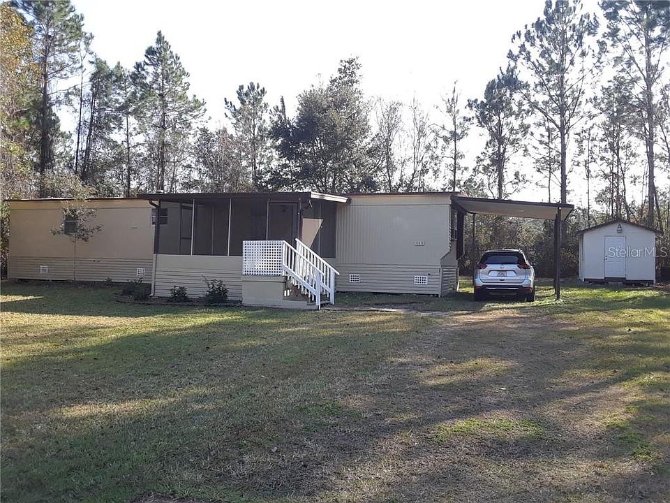2 bedroom 2 bathroom manufactured home in good condition. New kitchen cabinets, appliances, sink and faucets. Laminated floors. New paint inside and out. 0.29 Acre lot. Car 0r RV Carport. A 16X12 Shed with a new roof. Split bedrooms. Enjoy a 16X12 screened porch. Property located just minutes to the famous St. Johns River, bring your boat and enjoy fishing. There is a public boat ramp. Astor offer residents a suburban rural mix feel. There are restaurants, bank, gas station and supermarket.