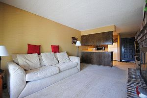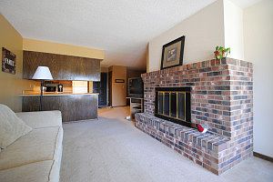 Clean and cozy, yet spacious condo with 2 bedrooms, 1 bath, dining room, nibbler bar, fireplace, and a nice patio over looking green space/park. Washer, dryer & air conditioner included! Convenient Location!