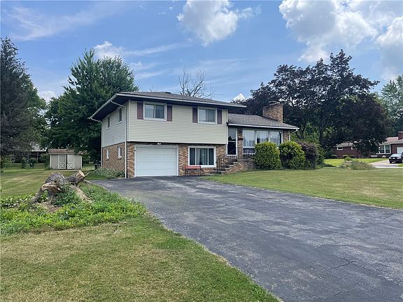 Welcome Home to this Darling 3 bedroom multi-level situated on a large 1/2 acre corner lot.. Modern kitchen with ample cabinetry and breakfast bar opening to dining room and large living room with log burning fireplace. Dining room displays sliding doors to closed in 3 season room. Upper level is complete with 3 nice size bedrooms. Newer flooring in kitchen and bath. New Hot Water tank. Finished basement. Some new windows (under 5 years old) throughout. New roof June 2023. Harwood floors in bedrooms and living room. Full basement for additional space.