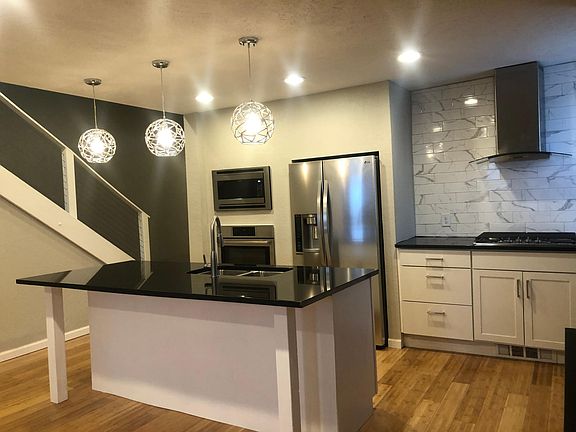 Newly Renovated Spacious 4 Bedroom Home with Air Conditioning, Off Street Parking, Laundry, Deck 1st Floor Floorplan is as follows; Open floor plan with living room opening to a kitchen with white modern cabinetry, stainless steel appliances, bar area and 8 foot granite island. Harwood Floors 1/2 Bath Laundry Room Office Patio Doors leading to large Deck off of the Living Room 2nd Floor Floorplan is as follows; 2 Large Bedrooms that share 1 Full Bathroom 1 Large Bedroom with Private Full Bath Hardwood Floors 3rd Floor Floorplan is as follows; Bedroom Suite with Private Full Bath Hardwood Floors and Built in Dresser Tenant is responsible for all utilities (Gas, Water, Sewage and Electric).
