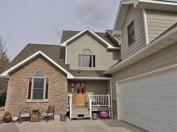 Located on an oversized city lot in walking distance from schools, golf course & Beck Lake. Open & spacious custom-built craftsman style 5 bedroom, 3 bath home. The great room offers vaulted ceilings with log beam accents and a massive rock gas fireplace as the centerpiece. Fenced back yard, excellent mountain views, end of cul-de-sac privacy, mature trees and close proximity to downtown Cody.