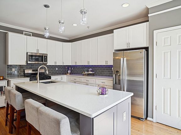 LOOKS LIKE NEW! Open floorplan, recently renovated brick front townhome with thoughtful updates and ample outdoor space in desirable Longmead Crossing. Walk in to beautiful hardwood floors, sophisticated trim, and trey ceilings. The stylish open-concept kitchen features stainless steel appliances, quartz countertops, island with bar seating and pendant lights, and a subway tile backsplash. Transition easily to dine and entertain with eat-in kitchen space along with open flow to the dining area and deck. Stunning hardwood stairs lead you to the elegant owner's suite with high ceilings, plush carpeting, walk-in closet, trey ceiling, and a tiled bathroom with dual vanities. Two additional bedrooms and the hall bath complete the impressive top level. The perfect spot for movie night awaits by the fireplace downstairs in the lower level. The finished lower level offers plenty of flexible living space to suit a variety of needs with a large recreation room, full bathroom, a separate room plus extra storage space. The deck and spacious fenced yard are ready to create your private outdoor oasis. Roof and full kitchen remodel were completed in 2019. Home is the second from the end on a dead-end road that ends with woods. Longmead is an idyllic setting with two pools, a clubhouse, picnic area, tennis courts, playgrounds, walking trails and more! Close to every suburban advantage. Nestled between Route 200 and Georgia Avenue, the home’s location is surrounded by several dining and retail options. Easy nature escapes are moments away at Argyle Country Club, Layhill Local Park, and Northwest Golf Course. Commuters will love the location’s easy access to I-95 and I-495.