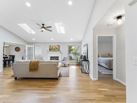 Absolutely GORGEOUS, REMODELED and hotly sought after RANCH home in highly desirable Walden Creek in Apex! This 3 bedroom, 2 full bath home has been remodeled and updated throughout. The main living areas feature beautiful and recently refinished hardwood floors. The spacious family room features a gas log fireplace, vaulted ceilings, and is immersed in natural light thanks to large skylights. The kitchen includes stainless appliances, granite counter tops, soft close maple cabinetry with under cab lighting and a tile backsplash. The master bath has been completely modernized and is simply STUNNING with marble tile, dual vanities, a frameless glass shower and brass fixtures and accents. The recently updated, heated and cooled sun room leads to a large paver patio overlooking ample green space. DO NOT MISS the 2-car GARAGE with wet bar, storage, ample electrical and is conditioned for year round use. Fully sealed crawl space, newer roof (2017) and HVAC (2015) and tankless water heater. Enjoy Walden's Creek pool and tennis facilities included with the HOA fees.