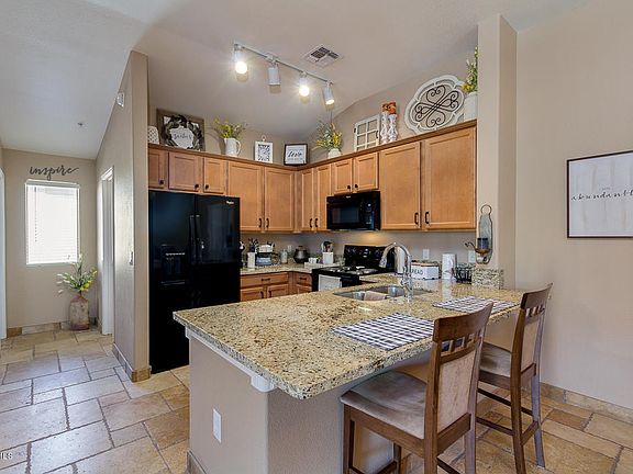 Awesome Condo in the Villagio complex is move-in ready! Living area all on second level with garage space below. Boasting open common areas with sliding doors that open to a large balcony. Travertine flooring in the main living areas and carpet in the bedrooms. Perfect size kitchen comes with matching appliances, granite counter tops, plenty of cabinet/counter space and even has a breakfast bar. Fabulous master bedroom includes its own ensuite bath with double sinks. You will love the large balcony where you can enjoy your morning coffee or your favorite evening beverage. Unit also offers a garage with an electric door! Complex is convenient to loops 101 & 202 and near shopping, entertainment, and dining. Come to see it and start packing!