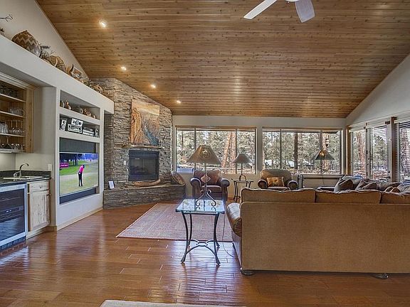 - Exterior Features: Covered Porch/Deck, Tall Pines on Lot, Porch/Deck, Landscaped, In the Trees, Covered Patio, View of Mountains, View of Golf Course, Patio, Grill, Drip System, Enclosed Patio