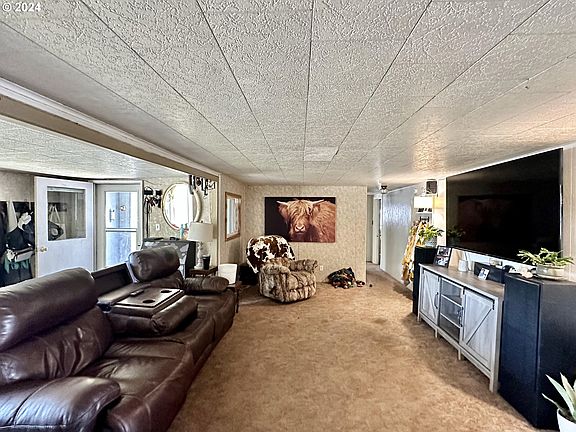 This charming single wide manufactured home, enhanced with a custom addition, offers an impressive blend of space, comfort, and convenience. Located on a large corner lot with mature trees, this property has three bedrooms, two bathrooms and a host of unique features. The large master suite includes a cozy gas fireplace, providing ambiance for relaxation. The convenient utility and laundry area provide ample storage space for day to day chores. A detached oversized garage with heat, electricity and double carport offers the opportunity for covered parking, projects and more! Owner will carry a contract! Call today for more information and to view this home!