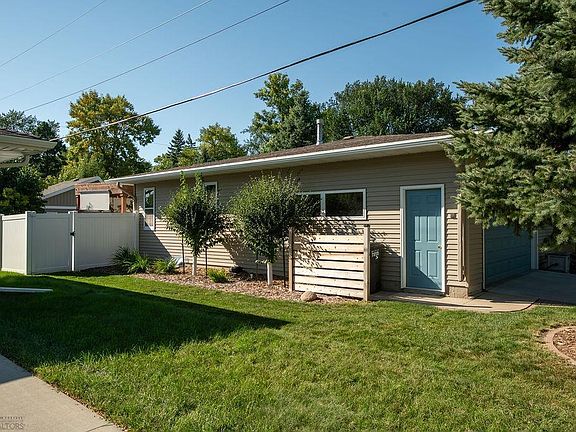 NO specials! Fully updated rambler in North Fargo, surrounded by mature trees and loaded with charm. From the moment you arrive, the stunning curb appeal and NEW front door make a statement. Enjoy the covered front porch before stepping into a thoughtfully designed main floor with an open-concept layout, featuring a MASSIVE kitchen with Sammy Custom Cabinets, formal dining, and a cozy sitting area—perfect for entertaining. The living room boasts mid-century vibes with original beams and a full masonry fireplace. Both main-floor bathrooms feature NEW custom cabinetry. Downstairs offers plush NEW carpet, 2 additional bedrooms, tons of storage, a bonus room, and a HUGE laundry area. Step outside to your backyard oasis: large pergola with shades, NEW pavers, fully fenced yard, and a heated workout studio—ideal for a home gym, office, or hobby space. Don’t miss the hot tub with a view! Full list of updates available in the docs tab.