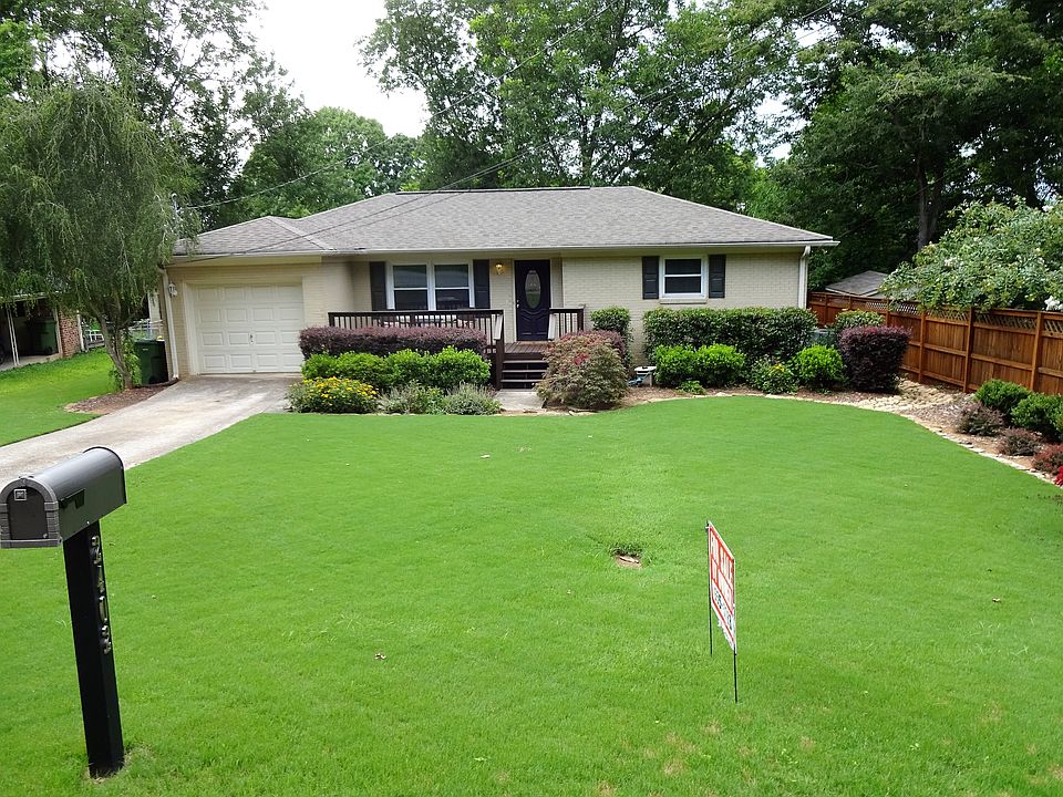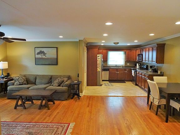 WILLING TO WORK WITH BUYERS' AGENTS. Remodeled brick rancher w/ open floor plan, large master suite, and updated kitchen/baths. Isolated master w/ 2 WI closets, double vanity, and large custom shower. Spacious kitchen with SS appliances and Corian counters opens to dining and living room. Beautiful hardwoods. One car garage and storage building. Mature, low-maintenance landscaping and flat yard (mostly fenced) with huge deck for entertaining!