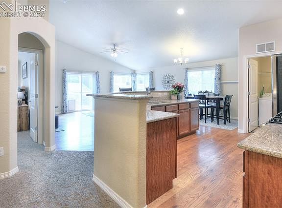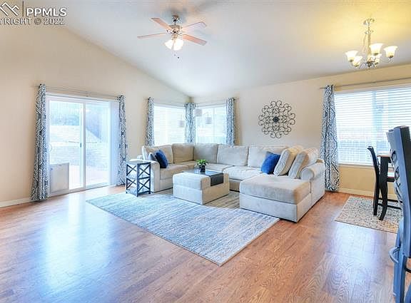 Fantastic 5 bedroom home located in the desirable Jessica Heights subdivision that is in close proximity to shopping, Colorado Springs airport and all military installations. This ranch style home includes an open floor plan with three bedrooms on the main level, a 5-piece master adjoining bath and an additional full bath. The eat in kitchen includes granite counters, stainless steel appliances, gas range and hardwood floors. The living room includes vaulted ceilings, plenty of natural light and offers a walk out to the spacious backyard that is fully fenced. The master bedroom has carpet throughout and adjoins to the 5 piece bathroom that includes a walk in closet with an ample amount of space. Downstairs is large family room that has carpet throughout and is perfect for entertaining. The basement also includes a bedroom with a walk in closet, a full bathroom and an addtional bedroom. Don't miss your chance to own this move in ready home!