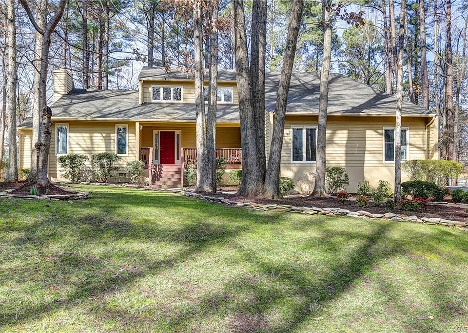 1ST FLOOR MASTER BEDROOM! UPDATED 5 BDRM 3 FULL BATH HOME SITUATED ON A PRIVATE ½ ACRE CUL-DE-SAC LOT! Over $70K in seller upgrades! Open 2-story foyer, tons of natural lighting, living & family rooms w/ floor to ceiling stone stacked fireplaces. Florida rm features new wood floors & panoramic views of the wooded backyard. Dining rm opens directly to an eat-in kitchen w/ island, skylights, granite countertops & tile backsplash. Spacious 1st floor master w/ vaulted ceiling, skylights, walk-in closet & updated master bath w/ his & hers vanities, custom cabinets, shower & private water closet. Additional 1st floor bedrm is currently used as an office but makes a great in-law suite & has access to a full bath. Rounding out the 1st level is a dedicated laundry room w/ sink, built-in table & cabinets. 2nd level features 3 generously sized bedrms, full bath & huge 25'x10' walk-in attic for extra storage. Additional features include new craftsman style doors, upgraded digital thermostats, recessed lights, 2-car side entry garage, full yard irrigation, community lake w/ fishing & small boat access! Located within minutes of Short Pump's premier shopping & activities!