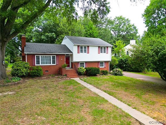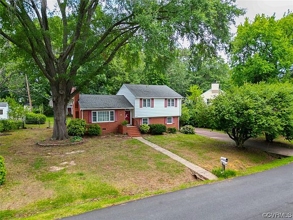 Welcome to this beautiful 4 bedroom, 2 full bath home in Skipwith Heights subdivision! When you enter the home you are greeted by the large living room with a brick fireplace and hardwood floors which is open to the dining room with crown and chair molding. The dining room flows into the kitchen, which consists of an island, granite countertops, updated cabinets, and stainless steel appliances. On the lower level you have a huge family room with laminate wood floors which creates another space for easy entertaining! Also on the lower level, is a bedroom with tile flooring and a closet, a full bathroom, and a large utility room. The top floor consists of three nice-sized bedrooms, all with hardwood floors, closet space, and easy access to the full bathroom with original black and white tile floors and surround. Other great features of this home include a heat pump/central air, an architectural shingle roof, low maintenance brick and vinyl siding, a private fenced yard, and a paved driveway. You will love this home's close proximity to shopping, schools, restaurants, and interstates.