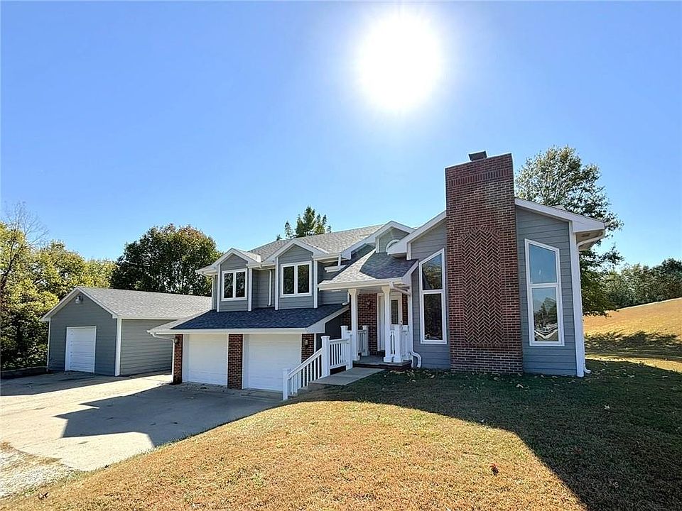 Stunning Custom Home on 3.65 Acres of Outdoor Paradise! Embrace the outdoors with this gently rolling 3.65-acre property, perfect for all your outdoor activities. Whether you dream of a sprawling garden or your own personal football field, there's room for it all! The property includes ample storage with a 2-car garage and a spacious 24x30 outbuilding—perfect for vehicles, tools, and toys. Step inside to an open floor plan designed for modern living. The spacious living room features a stunning fireplace that stretches up to the cathedral ceiling, offering an elegant focal point visible from both the dining room and the eat-in kitchen. The kitchen is a chef's dream, with granite countertops, a center island, a pantry closet, and lovely wood floors, all leading to a patio door that opens to a huge deck—perfect for taking in the views of the backyard and timbered area. The family room offers yet another space to relax, with easy access to the outdoors through a patio door. Working from home? A private office provides the ideal setup for productivity. With 4 bedrooms and 3 bathrooms, there's plenty of room for everyone. Recent updates include brand-new carpeting, fresh interior and exterior paint, and a roof replacement in July. Both the house and the outbuilding are built with durable 2x6 construction, a testament to the quality craftsmanship by the current owner, who custom-built this home.