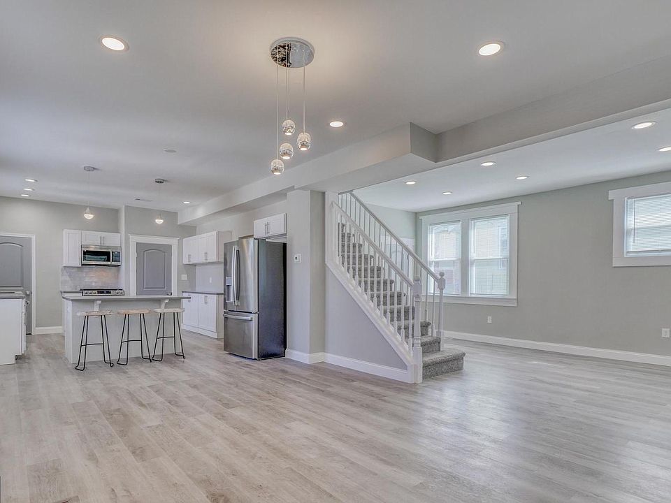 Live in a Custom-Designed Luxury Home, Renovated in Elegant Style. Open Layout, Large spaces, Sweeping Lines, Tall Ceilings. Large Master Bedroom with Dramatic Angles has a Walk-in Closet, and Large Attached Bathroom with Dual Vanity and Custom Tilework Featuring Calacatta Tile. Bonus sitting area/Office on the 2nd floor. Huge Open First Floor with Luxury Plank Flooring, Amazing Pendant Lighting, and Sunroom drenched in Natural Light. First Floor Bedroom and Full Bathroom. Open Kitchen with Wood Shaker Cabinets, Quartz Countertops with Custom Backsplash and Quartz Island/Breakfast Bar, Stainless Appliances including French Door Fridge, and Pantry. Basement Suite includes a Huge Family Room, Bedroom, Full Bath. Patio in Rear for Entertaining and Relaxing. New Roof, New HVAC System, Recessed Lighting, Two-Paneled Doors, New Replacement Windows, USB Outlets. Fireplace as is.