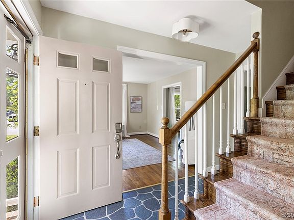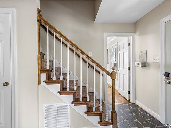 This stunning and freshly landscaped center hall colonial welcomes you home! The kitchen boasts stainless steel appliances, gorgeous backsplash, and light cabinetry. Just off the kitchen is the formal dining room which flows into the spacious living room. The main floor also features a cozy den with a beautiful fireplace. From the den you can step out onto your own private patio. Upstairs you will find three bedrooms, including the primary bedroom, which offers a full bathroom with a walk-in shower. The backyard is a true private oasis and offers a spacious deck which overlooks the yard.