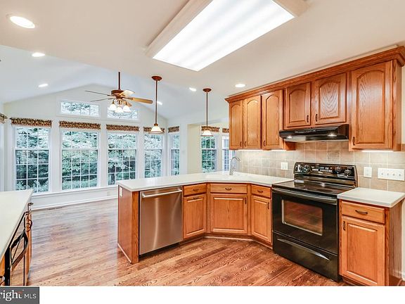 Improved Red Brick Annwood Model with impressive morning room addition off the expanded kitchen that features a vaulted ceiling with recessed lighting and an abundance of windows for plenty of natural light. The kitchen has been opened up and updated with Swanstone countertops, oak cabinets, recessed and pendant lighting, and loads of counter and cabinet space with undermount lighting and tiled backsplash. The family room features two Velux skylights with attractive low-voltage up-lighting that is recessed in the trim molding, a stone fireplace with gas insert, and an Andersen Sliding door that leads to the enclosed 3-season sum room with tiled floor and Andersen casement windows with matching grids. 4 generously sized bedrooms on the second floor with a completely remodeled white hall bathroom. The main bedroom has it's own private bath that has also been remodeled with a walk-in closet. Hardwood floors throughout the entire house on both first and second floors. An attached 2 car garage and a partially finished basement complete this well rounded house with lots of functionality to offer. Lennox HVAC in 2016, All concrete in 2007, Roof in 2005, Sun Room 2005, Kitchen, Morning Room addition, Windows & Siding in 2002. The lot is oversized and very private with mature trees and plantings.